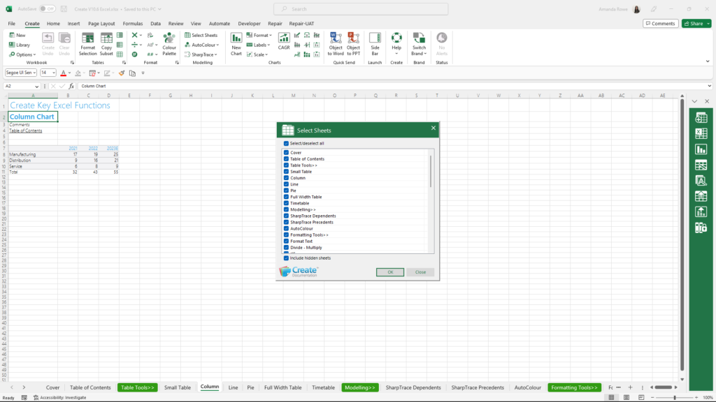 With Create you can create a package of any presentation, including all the linked source data - to either share with a colleague, work in a different location (e.g. laptop vs network) or to create an archive record of the document and it's Excel sources.